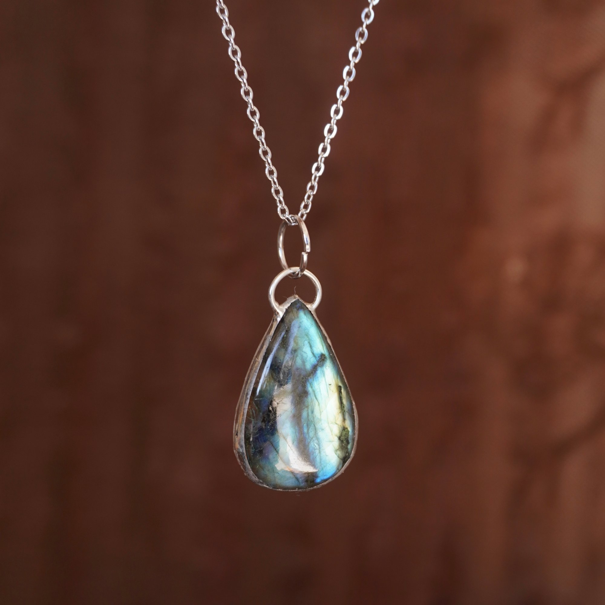 The stainless steel chain is 16” and is completed with a small lobster claw clasp. If you would like a different length chain, please leave a note in the order summary window. The maximum chain length is 20”.