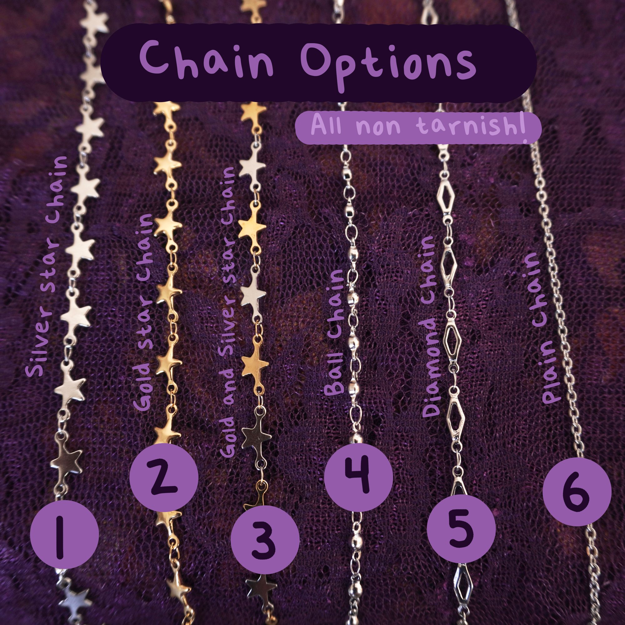 The stainless steel, non tarnish chain is 16” and is completed with a small lobster claw clasp. If you would like a different length chain, please leave a note in the order summary window. The maximum chain length is 20”. The lead free solder is made of alloys containing tin as the base metal, along with other elements like silver, copper, bismuth, and antimony to improve its properties. If you have allergies to any of these metals I don't recommend wearing this product.